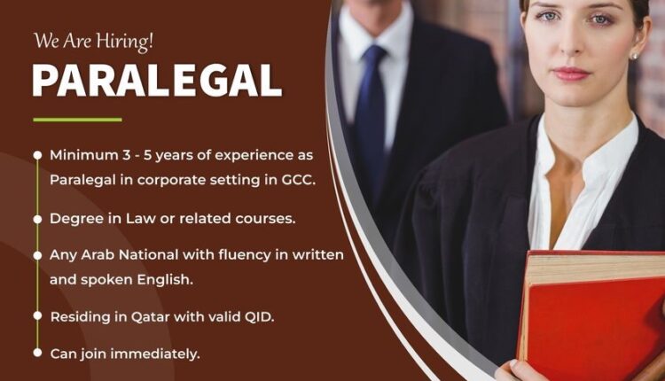 We are hiring a Paralegal for one of our clients in Doha.